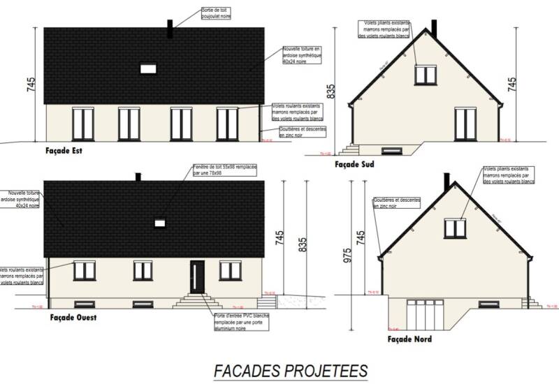 Déclaration préalable pour la modification de façades d'une habitation existante, et modification de la toiture.