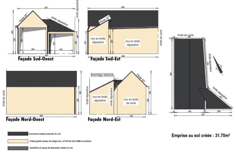 Permis de construire pour la construction d'un car-port indépendant à l'habitation. La construction devra suivre la forme de la limite séparative, pour respecter les règles d'implantation par rapport à celles-ci.