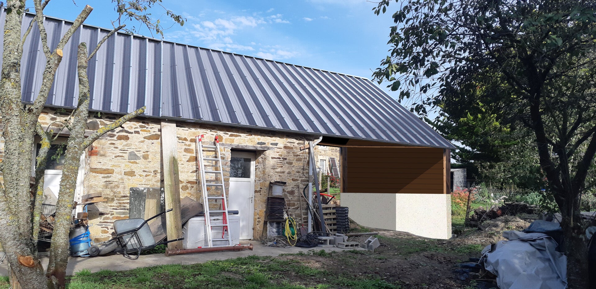 Déclaration préalable de travaux pour la réalisation d'un car-port accolé à un bâtiment existant.