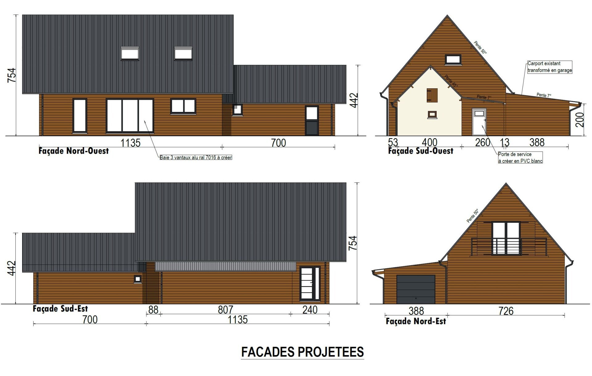 Déclaration préalable réalisée à Troarn pour le changement d'usage d'une annexe en habitation, et modifications des façades.