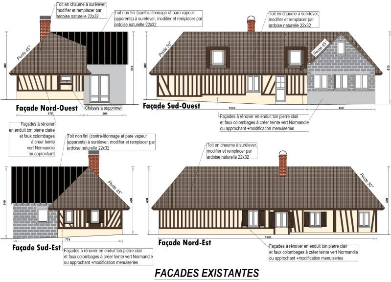 Déclaration préalable réalisée à Fatouville Grestain pour la modification et surélévation de toiture d'une habitation existante, et modifications des façades et menuiseries extérieures.