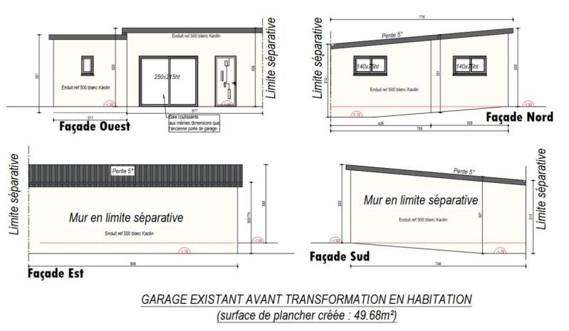 Permis de construire pour la transformation d'un petit garage en logement sur la commune de Saint Côme de Fresné, proche bord de mer.